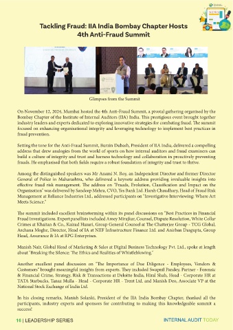Setting the tone for the Anti-Fraud Summit, Burzin Dubash, President of IIA India, delivered a compelling