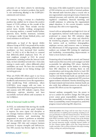 What sets FGII’s DEI efforts apart is our focus Another role that Internal Audit can naturally excel