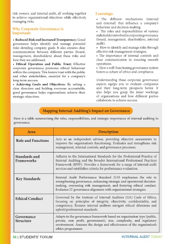 56 | STUDENTS' FORUM INTERNAL AUDIT TODAY