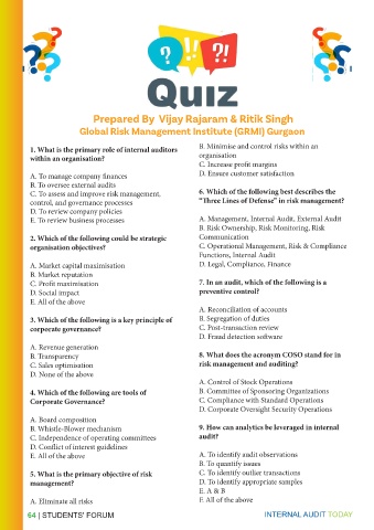 64 | STUDENTS' FORUM INTERNAL AUDIT TODAY